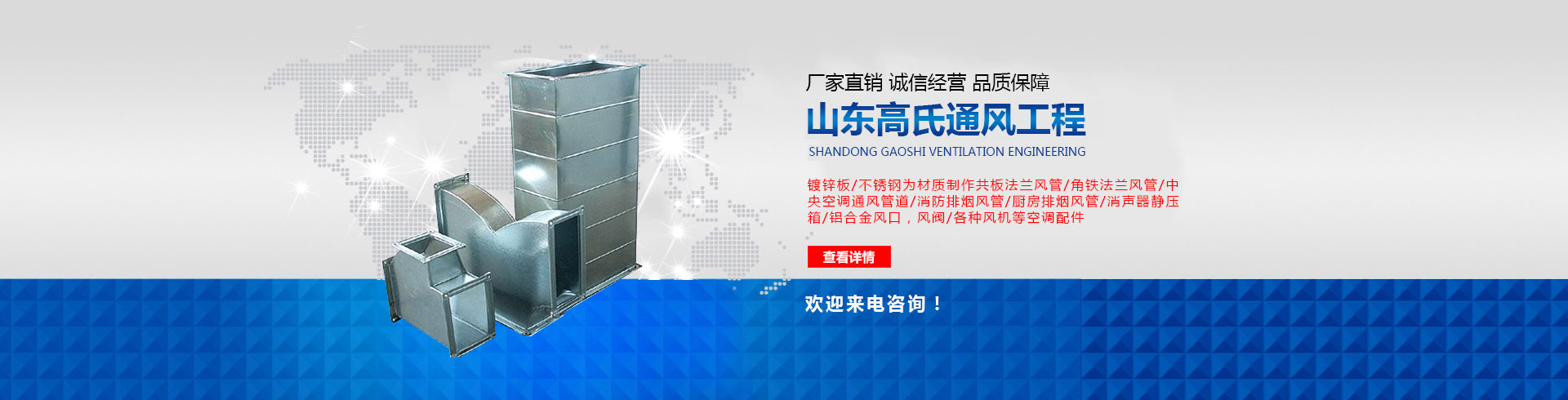 山東高氏通風(fēng)管道工程有限公司主要經(jīng)營(yíng)通風(fēng)管,酒店廚房排煙罩酒、黑白鐵加工已有多年,主要從事通風(fēng)管道設(shè)計(jì)、制作、安裝為一體的企業(yè),風(fēng)雨中我們?cè)跐?jì)南的通風(fēng)管道行業(yè)深受客戶(hù)的信賴(lài),公司成立之初即確定一個(gè)高起點(diǎn),公司擁有專(zhuān)用通風(fēng)管生產(chǎn)線(xiàn),各種設(shè)備齊全。 公司產(chǎn)品主要有,以鍍鋅板、不銹鋼為材質(zhì)制作共板法蘭風(fēng)管,角鐵法蘭風(fēng)管,空調(diào)通風(fēng)管道,消防排煙風(fēng)管,廚房排煙風(fēng)管,消聲器,靜壓箱,鋁合金風(fēng)口,風(fēng)閥,各種風(fēng)機(jī),等空調(diào)配件。 公司擁有高素質(zhì)管理人員,業(yè)務(wù)素質(zhì)高精、管理能力強(qiáng),展望未來(lái),任重而道遠(yuǎn),我們?cè)概c各業(yè)同仁一道,相互進(jìn)步,共同發(fā)展,服務(wù)回饋社會(huì),...